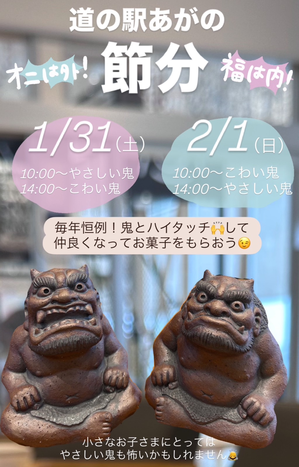 節分 鬼とハイタッチしてお菓子をもらおう!